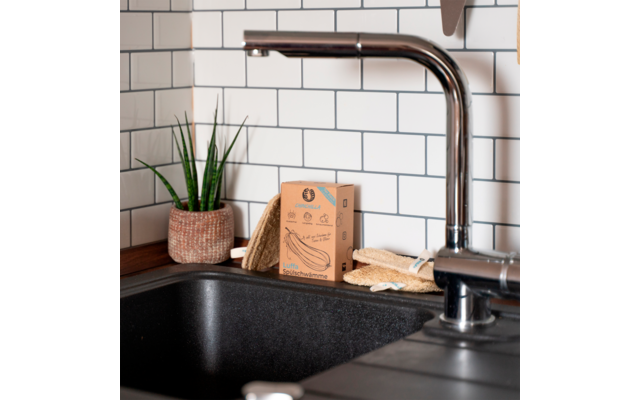 Die Chinchilla Küchenschwämme aus Luffa Schwamm und Baumwolle ermöglichen dir eine plastikfreie, saubere und einfache Reinigung von Geschirr, Oberflächen und mehr. Die Spülschwämme sind wiederverwendbar, waschbar und können nach ausgiebiger Benutzung einfach in den Bio-Müll oder auf den Kompost, da sie aus 100 % natürlichen Materialien bestehen – Deine Alternative zu herkömmlichen Haushaltsschwämmen aus Plastikmaterial!