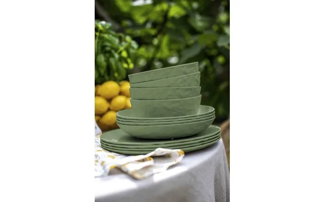 Das Geschirrset ist aus umweltfreundlichem thermoplastischem Kunststoff hergestellt und bringt frischen Wind in jeden Outdoor-Lunch oder Terrassen-Dinner und hält auch turbulenten Feiern ohne jeden Scherbenhaufen stand. Die solide Materialität und die modernen Farben vermitteln stets das gute Gefühl eines schön gedeckten Tisches. Das Material bleibt lange schön und ist natürlich spülmaschinenfest. Ideal für alle Outdoor-Aktivitäten, bei denen man auf stilvolles Geschirr keineswegs verzichten möchte. Abgerundet wird das 16-teilige Set durch vier formschöner Trinkbecher, Wasser, Longdrinks, Säfte oder Limonade – dieser Becher kann wirklich alles! Damit wird er in- und außerhalb des Hauses ganz schnell zum Vierjahreszeiten-Universaltalent, das zudem mit seiner faszinierenden Facettenstruktur viel Leben auf Tisch und Tafel bringt. Seine organische Haptik der Außenseite lässt sich auch von Kinderhänden sicher greifen – und sollte er doch einmal herunterfallen, bleibt er ganz! Da man unter diesen Voraussetzungen eigentlich nie genug Exemplare von CLUB L haben kann, macht sich das Glas im Küchenschrank durch ideale Stapelbarkeit ganz besonders schlank.
